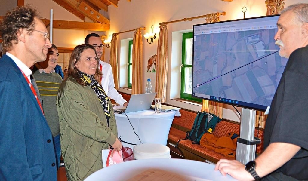 (Bild: v.l.n.r: Kommunikationsreferent Sven Madlung, Gesamtprojektleiter Matthias Neumaier, Projektleiter Falko Haase und Bundestagsabgeordneter Alois Rainer)