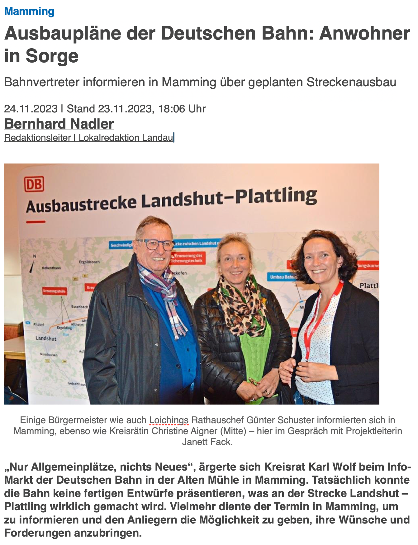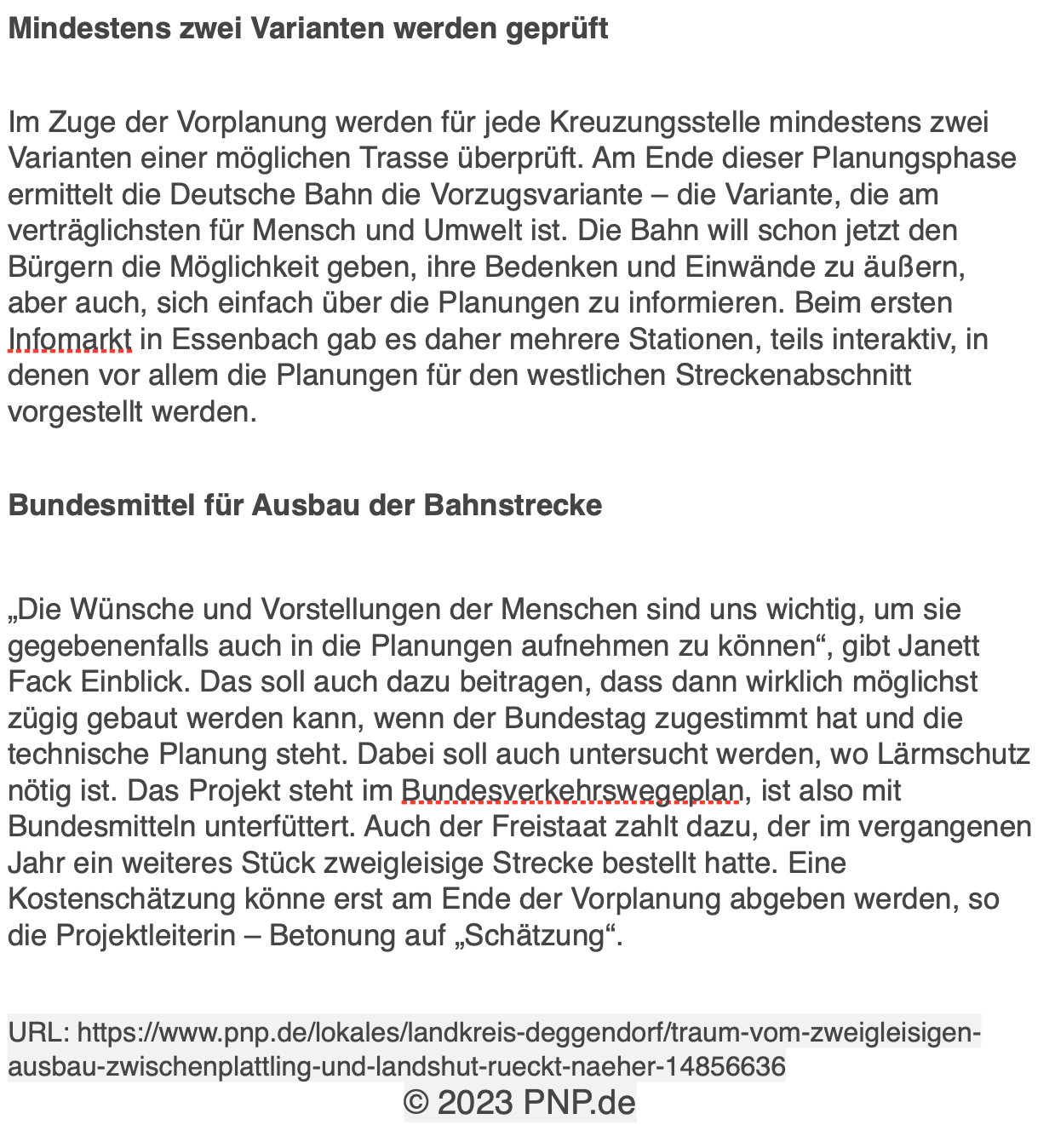 11.03.2024, PNP PLUS: Geschlossen für Forderungen an die Bahn - bedeutet der Ausbau Plattling-Landshut eine "wesentliche Änderung"?
