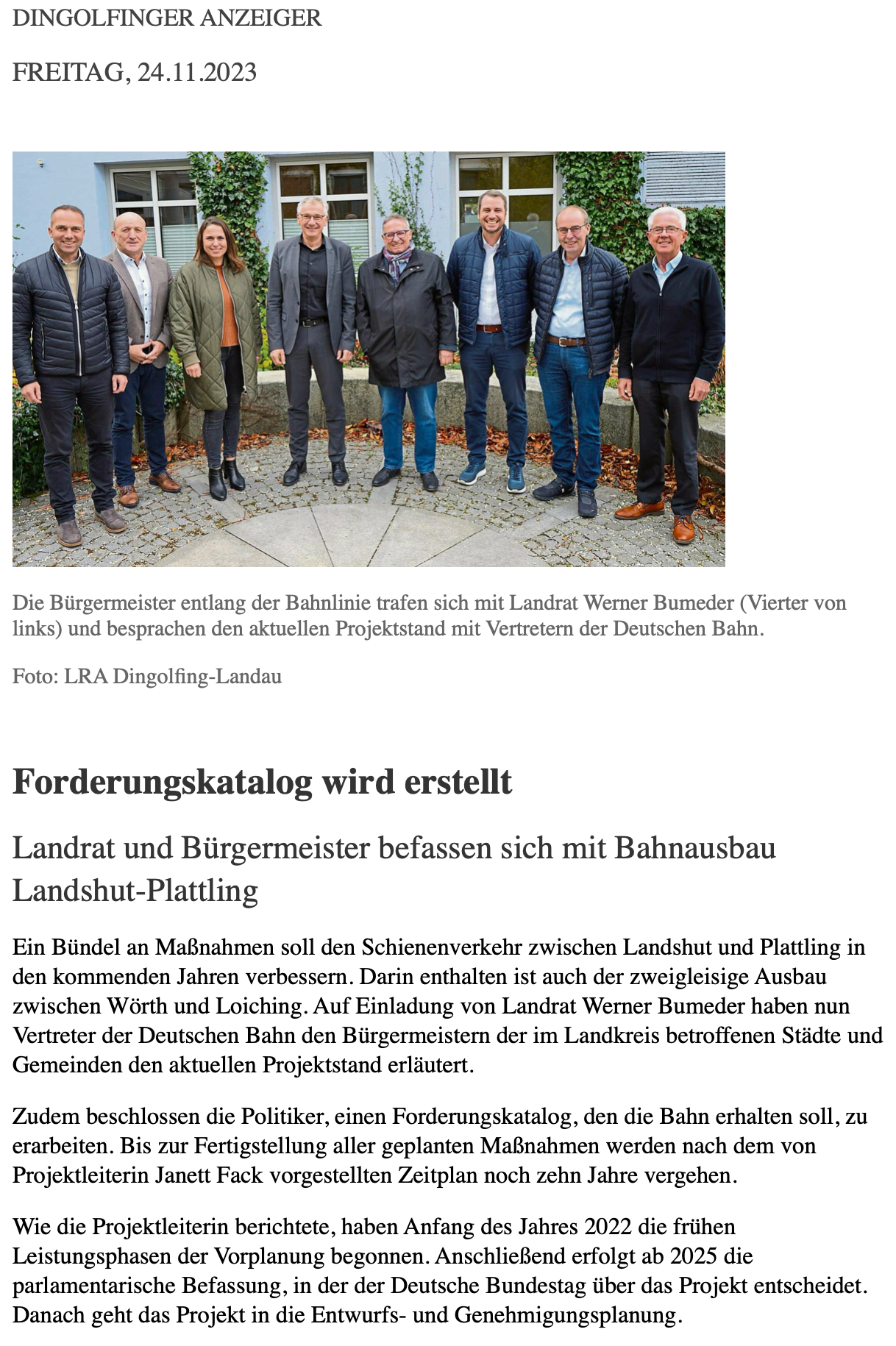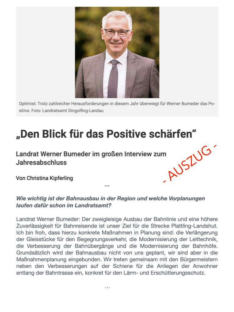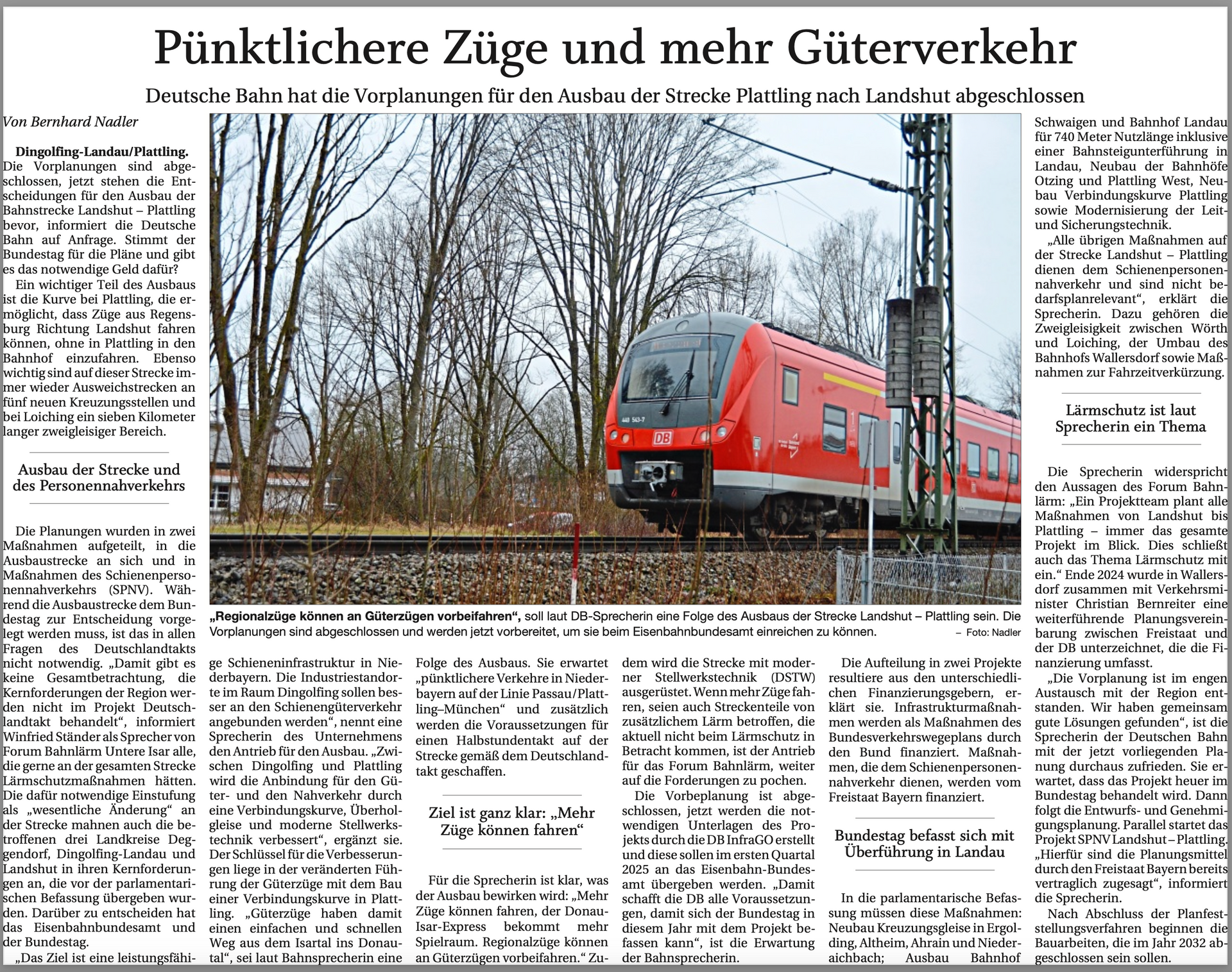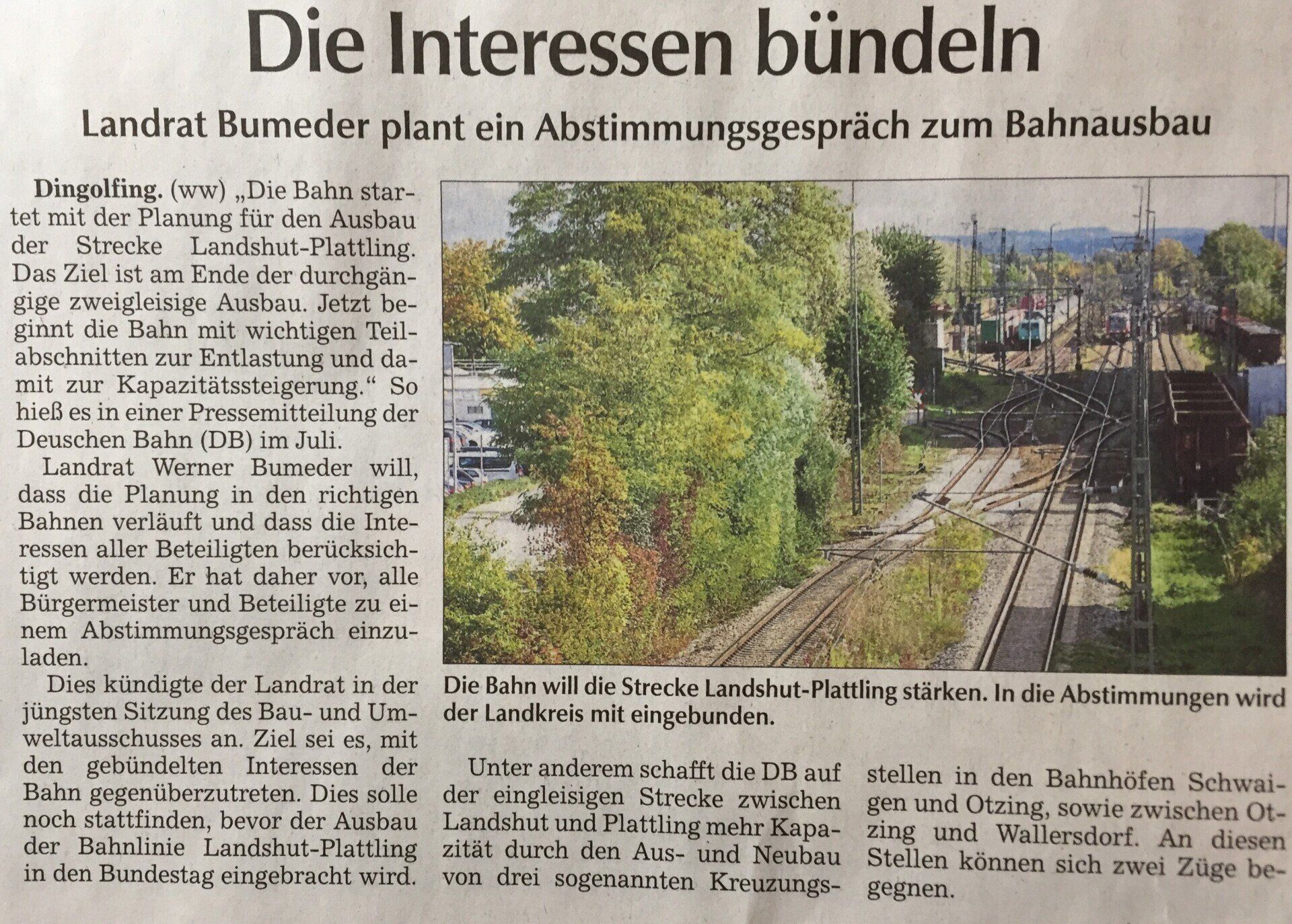 14.05.2025, PNP: Bahnstrecke Plattling-Landshut: Landrat Bumeder äußert sich zu den Bahnplänen