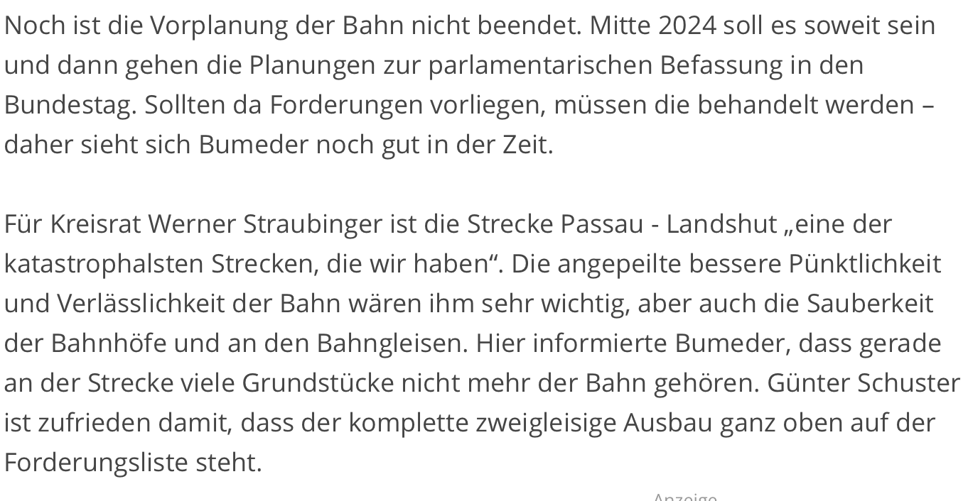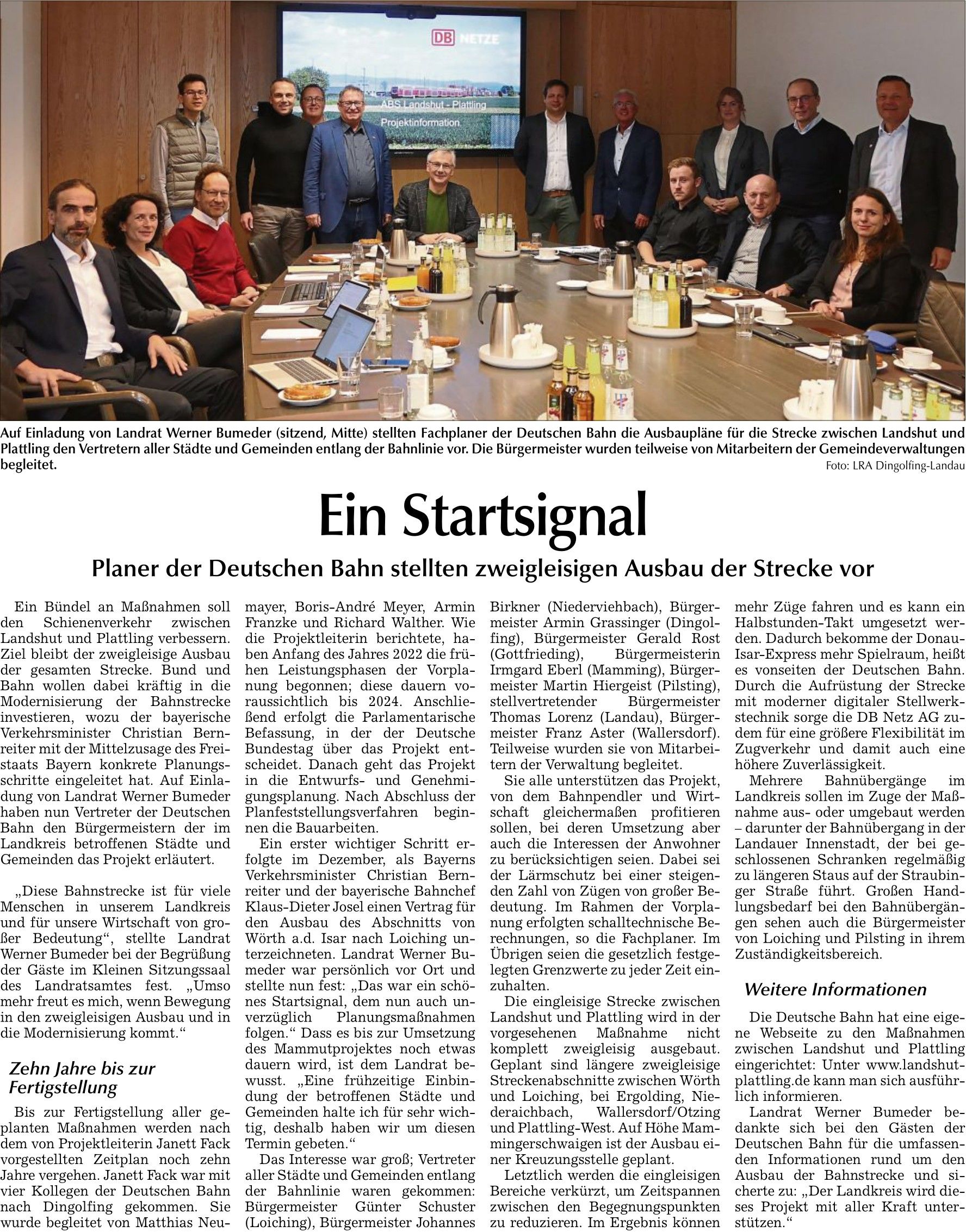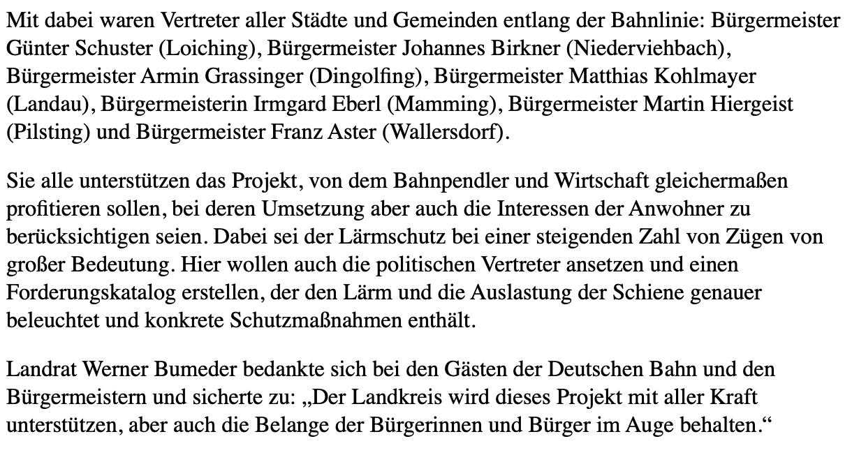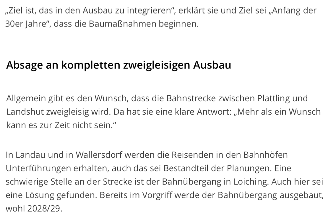 14.05.2025, PNP: Bahnstrecke Plattling-Landshut: Landrat Bumeder äußert sich zu den Bahnplänen