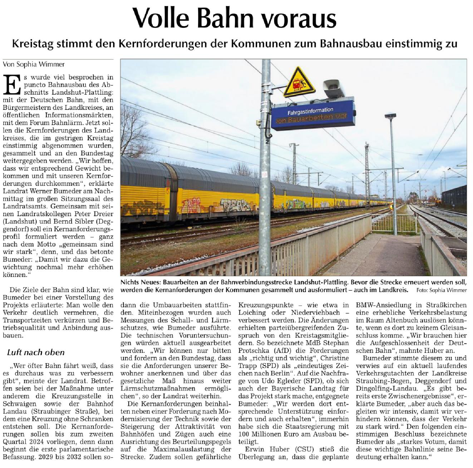 19.03.2024, Dingolfinger Anzeiger: Volle Bahn voraus