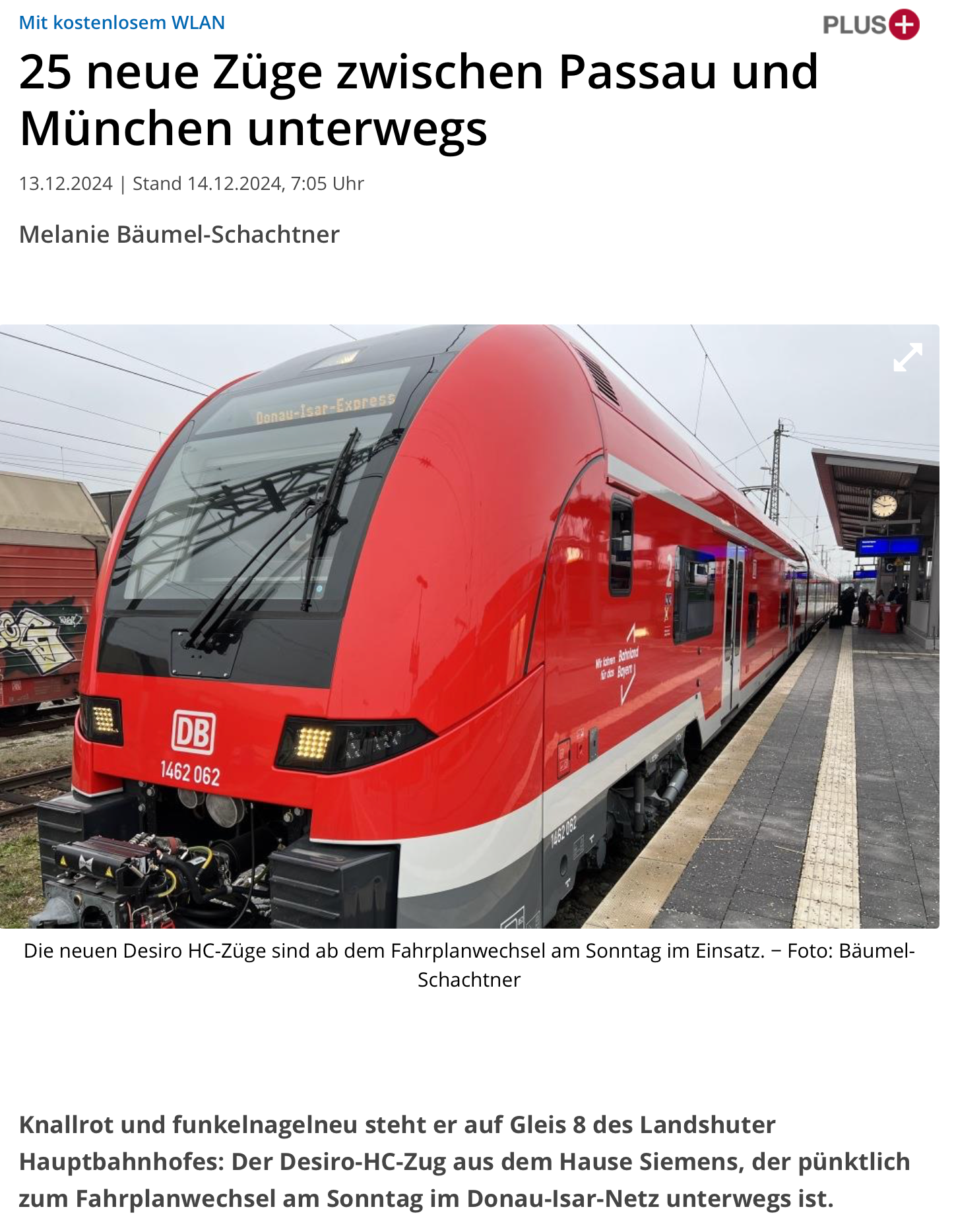 13.12.2024, PNP plus: 25 neue Züge zwischen Passau und München unterwegs