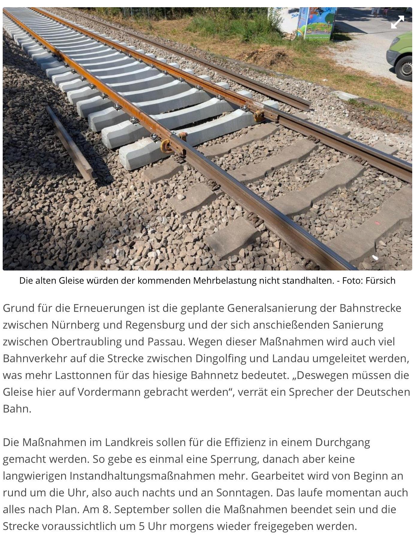 16.10.2025, PNP: Dürfen Züge 160 km/h fahren? Probebohrungen im Gleisbett Dingolfing - Landau