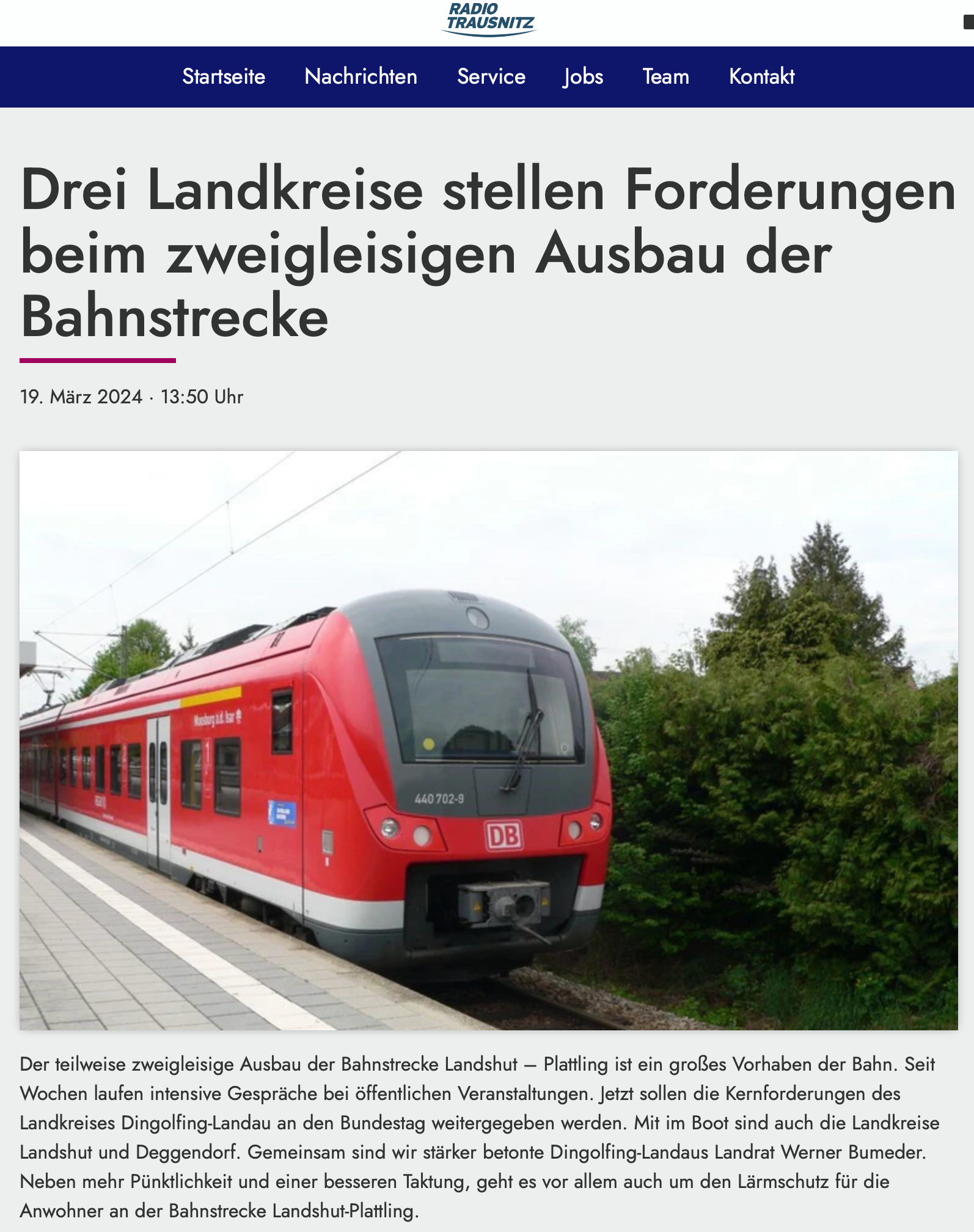 21.03.2024, Medieninformation des Landratsamts Landshut: Mehr Schiene, weniger Lärm