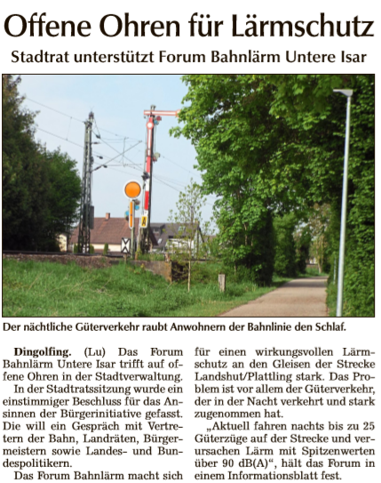 19.03.2024, PNP: Ein starkes Signal an die Bahn - einstimmig für mehr Lärmschutz an der Bahnstrecke