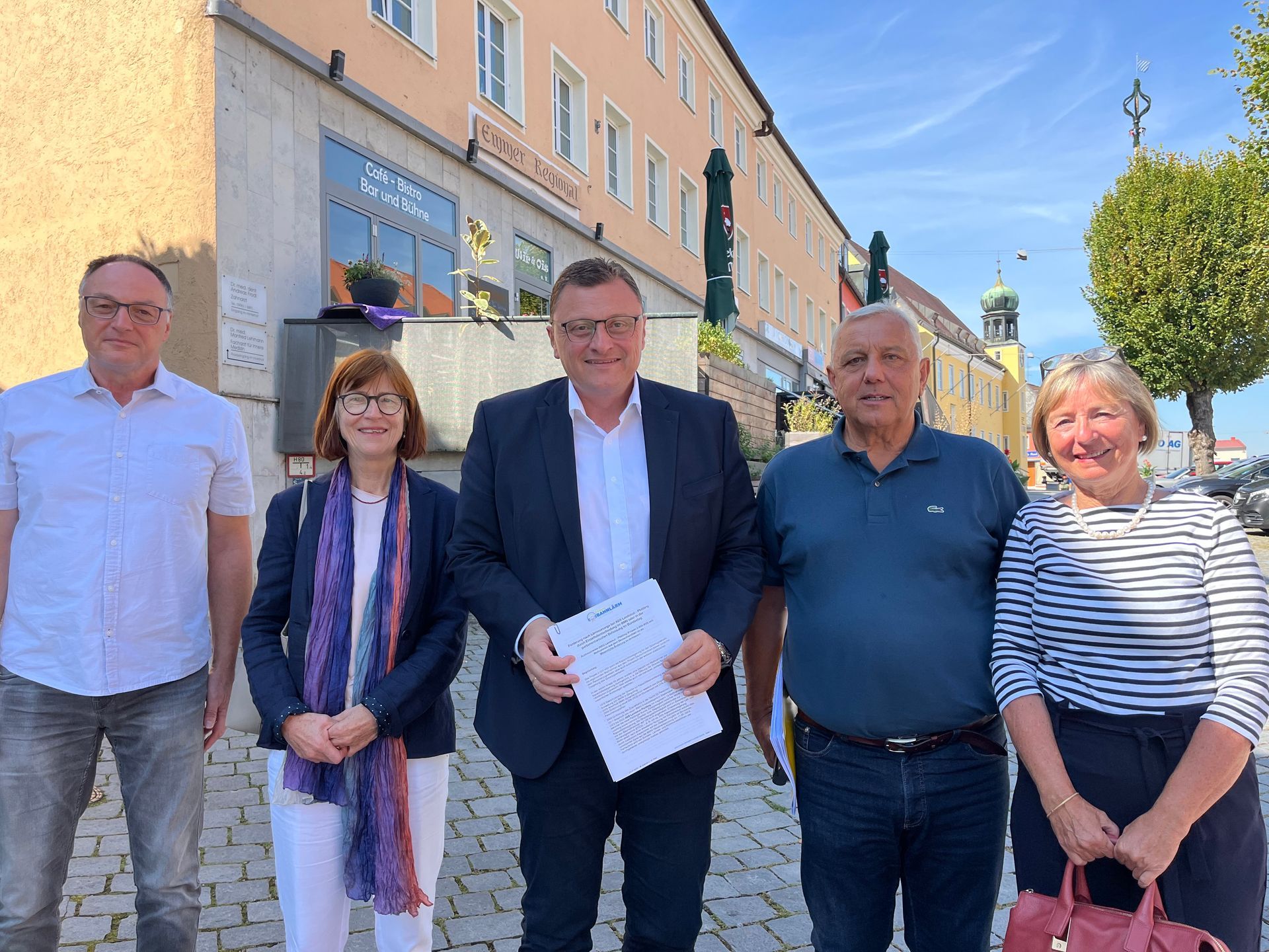 Vertreter des Forums Bahnlärm Untere Isar haben den Argumenter für die "wesentliche Änderung" an MdB Günter Baumgartner übergeben. Von links Wilfried Ständer, Maria Lehner, MdB Günter Baumgartner, Werner und Irene Peisl.